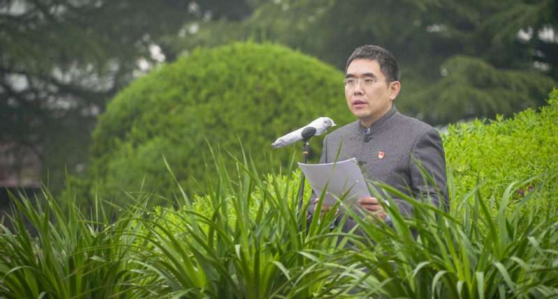 功勋彪炳史册,精神永垂不朽。在校学生会主席团成员周梦婷的领誓下,现场全体青年团员面向团旗,高举右拳,重温入团誓词。陵园上空回荡着常纺院青年的铮铮誓言,熟悉又庄严的誓词提醒着在场的每一位青年团员:铭记团员使命,不忘入团初心。随后,李凯宣读我校共青团、学生会“学党史强信念跟党走”学习教育活动方案,明确今后我校共青团工作主要围绕建好“三个主阵地”、实施“七个青行动”开展各项党史学习主题教育活动。最后,张震宇为青年团员作党史学习第一讲。他围绕青年学习党史的求学、求是、求行三个问题,提出青年学生应学党史、感恩党、跟党走、增党光,忠心于党、忠诚于国,以昂扬姿态奋力做好当下的点滴小事,于未来在实现中华民族伟大复兴中国梦、捍卫人类命运共同体的光辉岁月中为党绽放更大光彩!