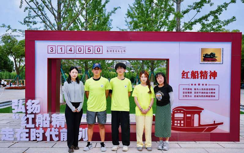 嘉兴南湖,是党的梦想启航之地。团队走进南湖革命纪念馆,追溯党的初心,让红色基因在青年心田深深扎根;驻足嘉兴南湖中共一大会址,以南湖畔飘落的梧桐叶为天然画布,用丙烯颜料调和出深浅不一的朱砂红与松花黄,勾勒出心目中的“红船”,让红色记忆在青年指尖流淌。在洪合镇,团队参观了王洪合革命事迹展陈馆,展馆内,以“星火使命·日照洪合”为主题,通过“黎明绝响”“寻找洪合”“时代使命”三大篇章传递团结内核。